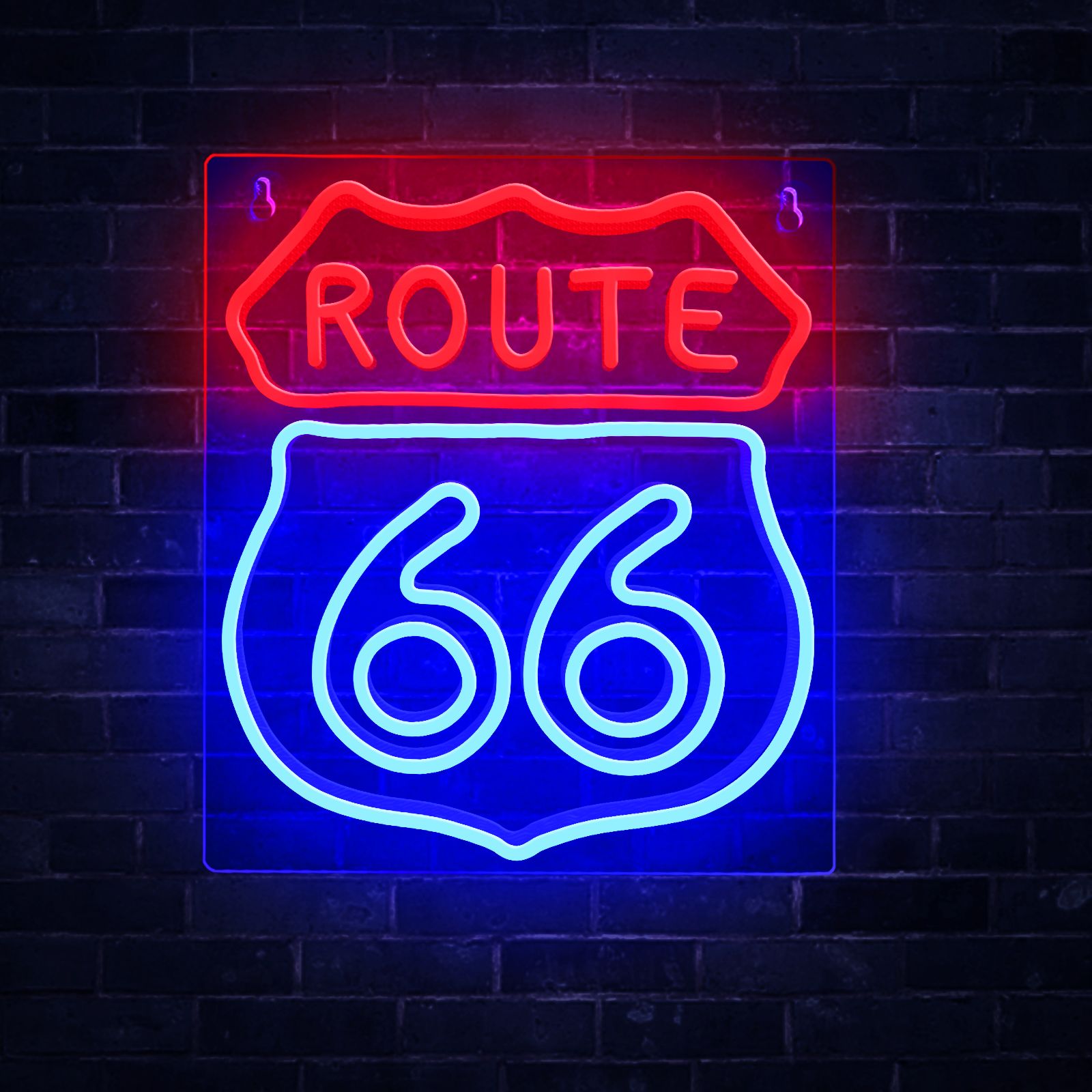 Home > Route 66 LED Neon Sign Light,USB-Powered Wall Art,Energy-Saving,Vintage Man Cave Decor for Bedroom, Office, Hotel, Cafe, or Recreation Room