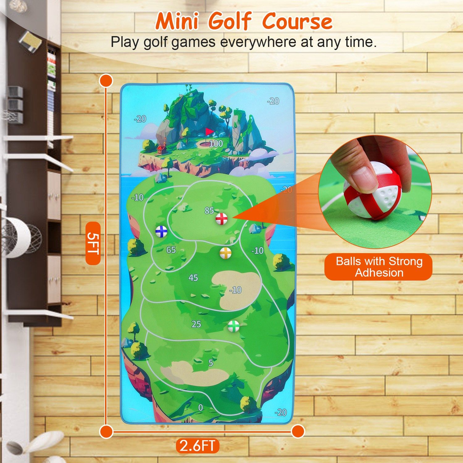 *Easy To Set Up & Maintain*:It’s easy to set up this indoor golf game within 1 minute with 6Pcs ground stakes. Suitable for indoors and outdoors!You can enjoy the competition in the living room,game room,backyard,patio and so on. Support hand washing,not easy to deform and fade. Note:Not recommended to machine wash.