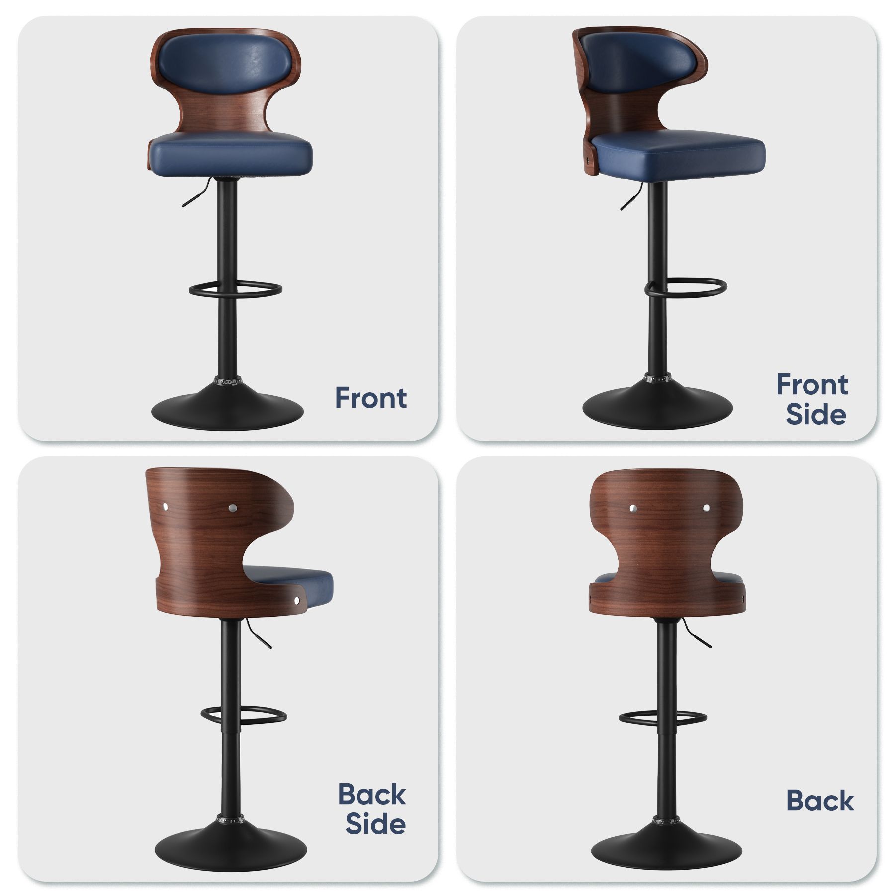 Bar Stools Set of 2 Seat Adjustable Height 25.2-33.8IN - Bentwood Swivel Barstools with Back & Footrest - PU Leather Upholstered Bar Chair for Bar