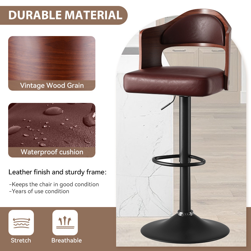 under the seat you can easily adjust the height of the seat from 25.2'' to 33.86", suitable for different heights of people and counter or bar height. 360° Swivel bar chair for limitless mobility will increase more fun and offer more convenience. Multi-scene Use Bar Stools:The simple color and high-quality materials give these modern bar stools a very stylish and elegant appearance. You can put stools in any scene at will, including pub, kitchen island, dining room, counters, coffee shops. Bar stools set of 2 can perfectly combine the decorations with an extra personality. Upholstered Comfortable Design:The backrest conforms to the ergonomic design, which can effectively relieve the back fatigue.The soft and comfortable cushion makes you not tired for a long time.The safe hydraulic rod makes the bar chair more stable.Curved foot rest makes your feet comfortable. Anti-Skid & Sturdy:The firm as well as wide base can enhance powerful support to sitter and improve stability. Furthermore, anti-scratch rubber ring on the bottom will protect floor and realize slip resistance. The bar stool capacity of up to 300 lbs. Easy to Assemble & Clean: Counter height bar stools equipped with installation instructions, quality hardware and installation tools, each counter height chair takes only 10 minutes to install. PU leather cushion and backrest allow you to clean easily with just a damp cloth.