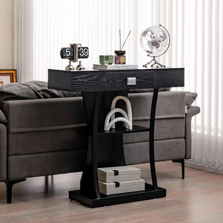 Console Table with Drawer and 2-Tier Shelves for Entryway Living Room
